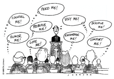 As you can see, this cartoon gets me going. I could keep going, but I better stop. I agree with you, everyone (including the minister) has these needs. I just think we are going about addressing these needs wrong, that this model only keeps people needy, and never helps them mature to the point where they help serve others needs.